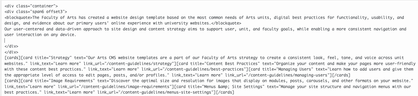 Note: Module Cards should not be contained within the <div> code above. They will not display properly.